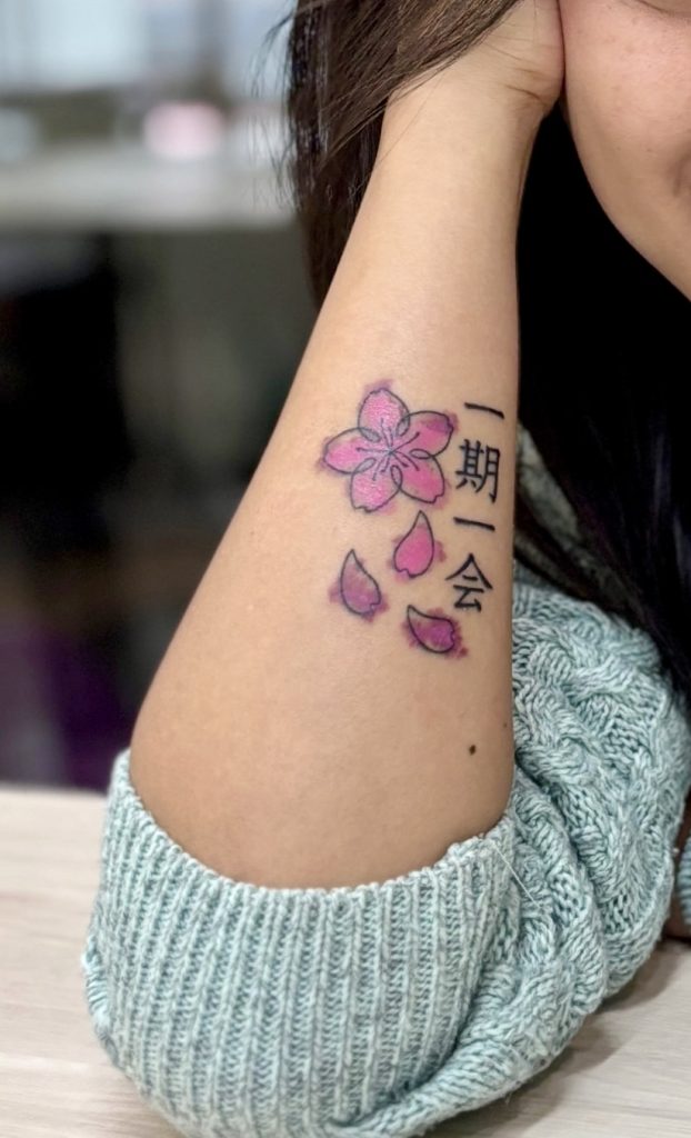 After months of contemplation, I eventually settled on a Sakura tattoo with a splash of pink watercolor, paired with the Japanese phrase “Ichigo Ichie,” which beautifully captures the idea of embracing life’s impermanence. With the design locked in, the search for the perfect tattoo shop in Tokyo began.