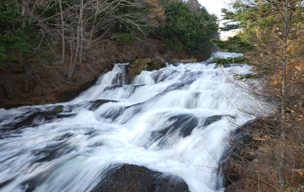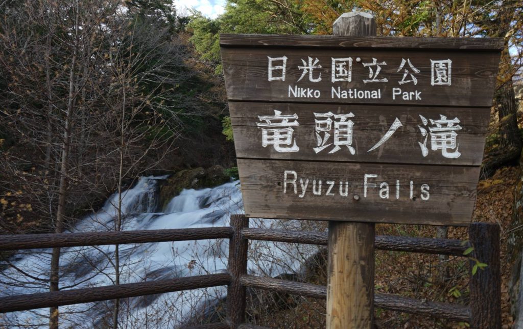 Ryuzu Falls. Ryuzu Falls in Nikko is famous for its stunning autumn colors. Unfortunately, when we visited on November 1, most of the leaves had already fallen, so the vibrant reds, oranges, and yellows were already missing. Perhaps we should have visited a bit earlier. The name ‘Ryuzu Waterfall’ means ‘Dragon Head Waterfall’ in Japanese, referring to the shape of the falls, which resemble the head of a dragon. The waterfall can be viewed free of charge from a small observation deck.