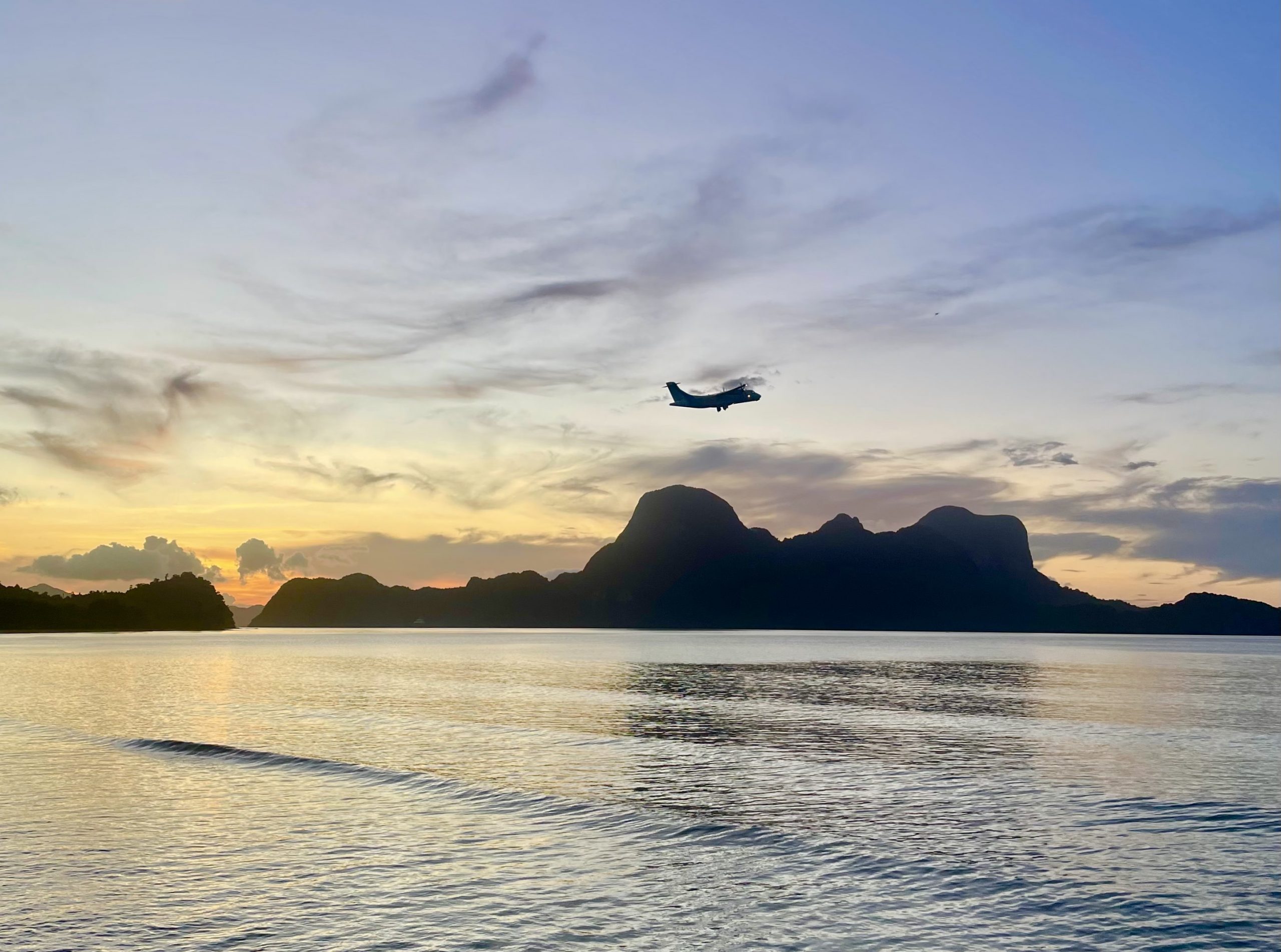Sunset at Lio Beach. This place is just near the airport, hence the presence of the plane
