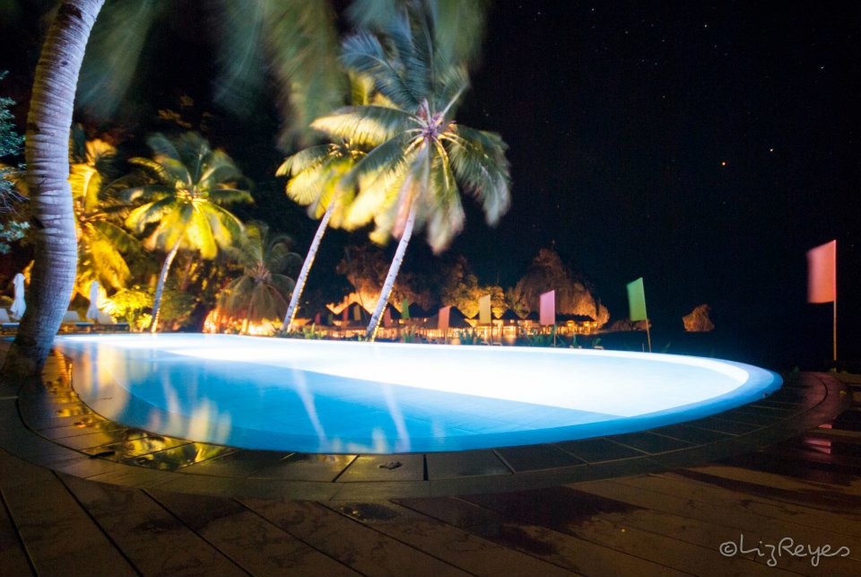 If your cottage is situated on the east side of the resort, taking a long night exposure shot is perfect. The majestic limestone behind your water cottage is truly an amazing sight to behold. Enjoy your dinner, lounge in the pool for a while and call it a night. Place is usually quiet as early as 8PM or 9PM. You may even schedule a massage in their very cozy massage area.