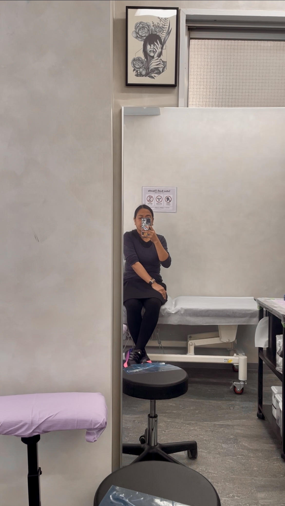 Apparently, their main office—where they welcome clients—is different from the actual tattoo studio, which is just next door. After confirming the design and cost, we moved to the other building to begin the session. Unfortunately, companions aren’t allowed inside the enclosed room where they do the tattooing, so I don’t have any nice photos or videos.